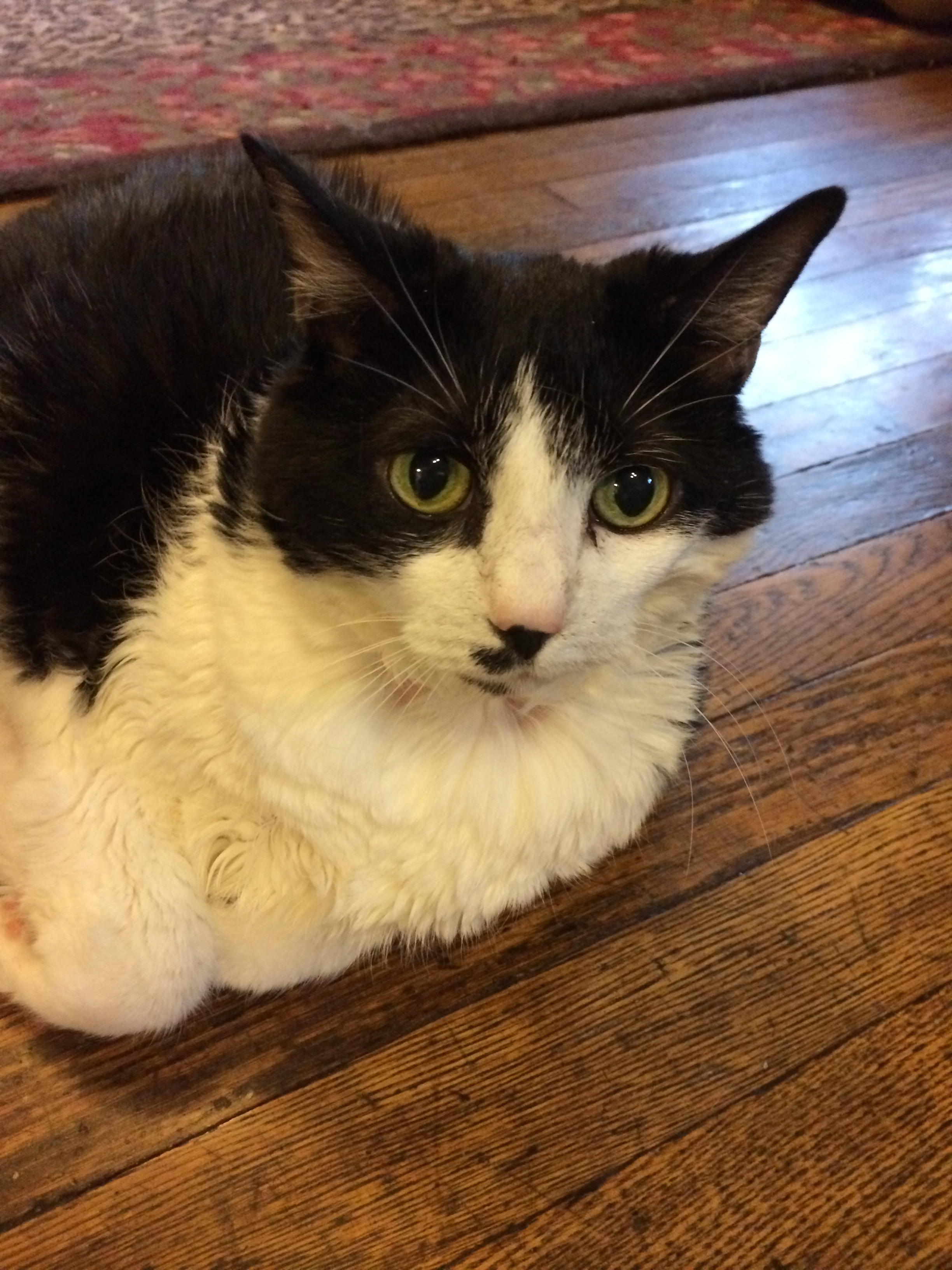 When I met Steve, I had four cats. I lost my Roscoe–who is his own story–only a month or so into our relationship, leaving me with the three girls: Eliza Jane, Charlie Kate, and Lolita. To Steve’s great credit, he never balked at my plentiful furry roommates. My mother has long told me that when it came to choosing a partner I should (and I quote) “Listen to your cats!” Had I followed her advice, I could have saved myself and several people I cared about some heartache over the years. There was genuinely sweet “Jim” in grad school: Roscoe would pee anywhere but the kitty box rather than walk through a room Jim was in, apparently aware we were a mismatch well before I was. “Michael” thought it amusing to tease Eliza by startling her; she hissed, ran down the hall, and never forgave him. And the man I dated not long before I met Steve was highly allergic, the equivalent of a neon sign flashing “Not this one!”