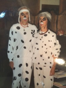 Still, I wonder if there’s a generational element, too, if couple’s costumes have even always been a thing. A colleague pointed out they may have been popularized by Lily and Marshall of television’s How I Met Your Mother (2005-2014). They were known for wearing some epic couple’s costumes: he as pirate, she as parrot; she as matador, he as bull. The long-time singleton in me particularly likes how they often incorporated the unattached Ted, such as when he complemented their salt and pepper duo by dressing up as cumin. I don’t remember many couple’s costumes from my younger days, except for one Barbie and Ken in grad school. My mom and dad did go to a Halloween party while I was in college wearing Dalmatian costumes mom had crafted from white sweat-suits and black fabric paint. I remember thinking they looked super cute, though my dad was probably not super thrilled. He was a good sport, though, and played along.